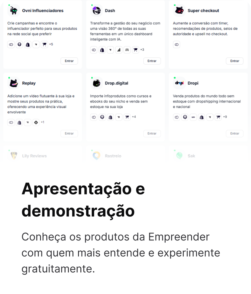 Con Empreender Expert tienes soporte por videollamada para todos los productos de Empreender. Habla con un especialista dedicado, comparte tu pantalla en tiempo real, resuelve problemas técnicos, aprende a usar los aplicativos o recibe orientación estratégica, todo de forma simple y personalizada. Ideal para resolver dudas, integrar apps, solucionar errores y mejorar la operación de tu tienda.